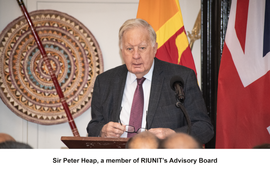 Next, Sir Peter Heap, a member of RIUNIT’s Advisory Board, spoke of the special relationship that Sri Lanka and the United Kingdom enjoy, especially with reference to the sustained growth in trade and tourism.