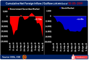 May 10, 2019 (LBO) – Foreign institutional selling of Sri Lanka’s government bonds picked up pace in the past week with approximately Rs11bn (US$60mn) of net outflows. Total foreign investor holdings of Sri Lankan government bonds has now reached multiyear lows, with total foreign holdings at just over US0mn.The fallout from the Easter Sunday terror […]