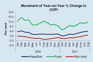 Tag: Headline inflation increased to 6-pct in August 2021