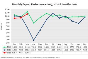 Sri Lanka surpassed US$ 1 billion in exports in March 2021 after a lapse of six months period, the Export Development Board said. As per the Customs statistics, earnings from merchandise exports recorded double-digit growth of 62.47% in March 2021 on y-o-y comparison – the March figure being US$ 1,066.1 Mn. Earnings from merchandise exports […]